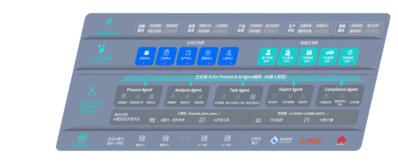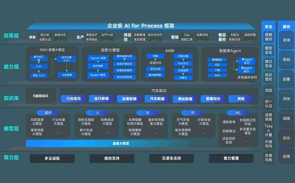 端到端的一站式AI工作空间深度融合了从企业战略规划到日常经营的全流程业务板块,,,定向解决车企内部领域多、、、部门多、、链条长、、、、场景碎片化等难题,,,,支持车企快速构建以AI为核心的生产力写作体系,,,,实现任务执行与AI能力的无缝集成与交互